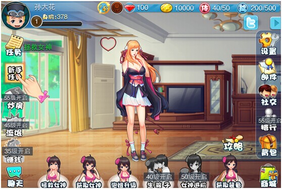 先看看新手任务有哪些。领取任务,然后并不按照系统提示的去泡妹子 (泡妹子是用来升级用的,也可以勾搭别人的妹子回家啪啪啪生自己需要的娃),先去拯救女神。